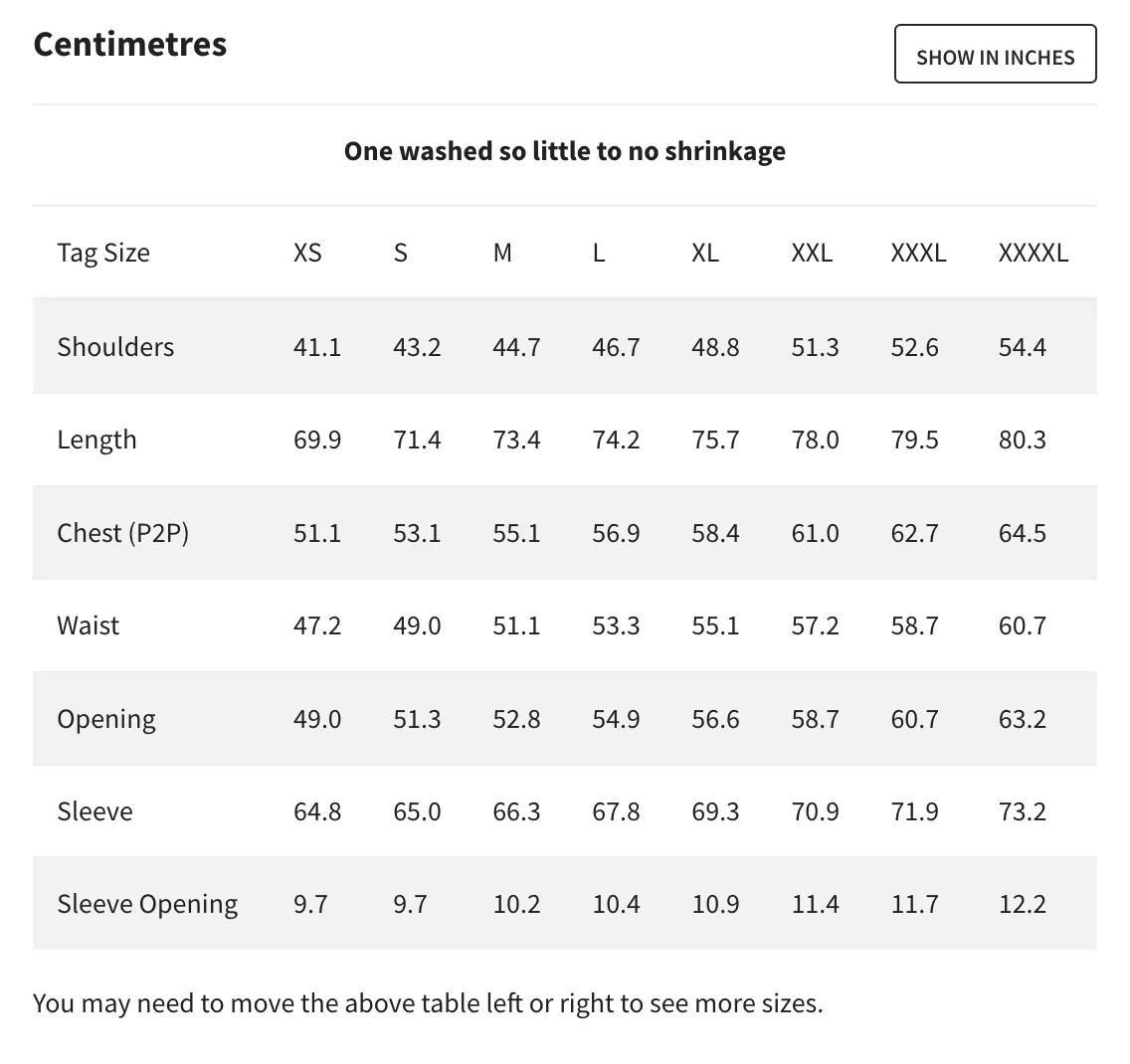 - One washed so little to no shrinkage