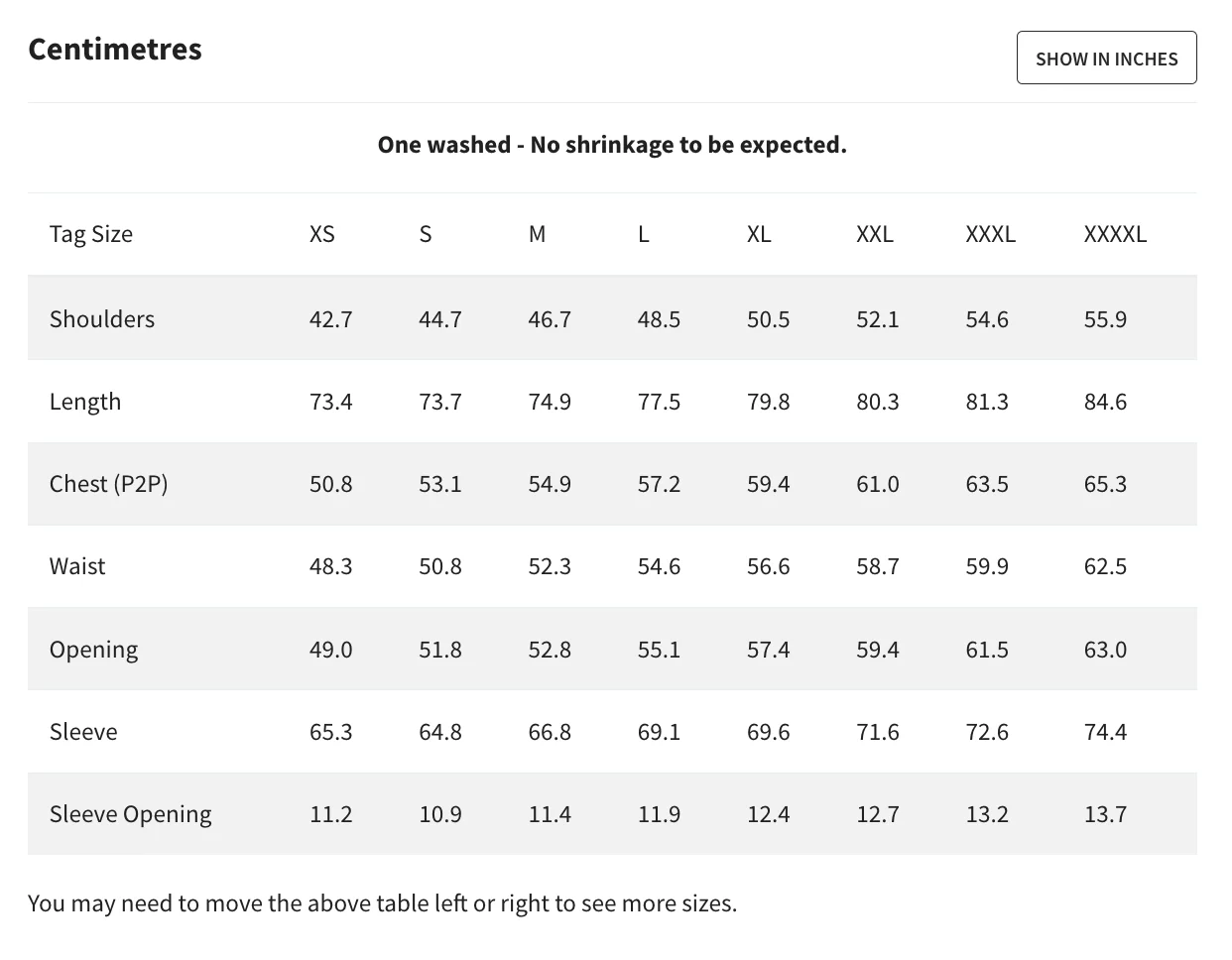 - One washed - no shrinkage to be expected
