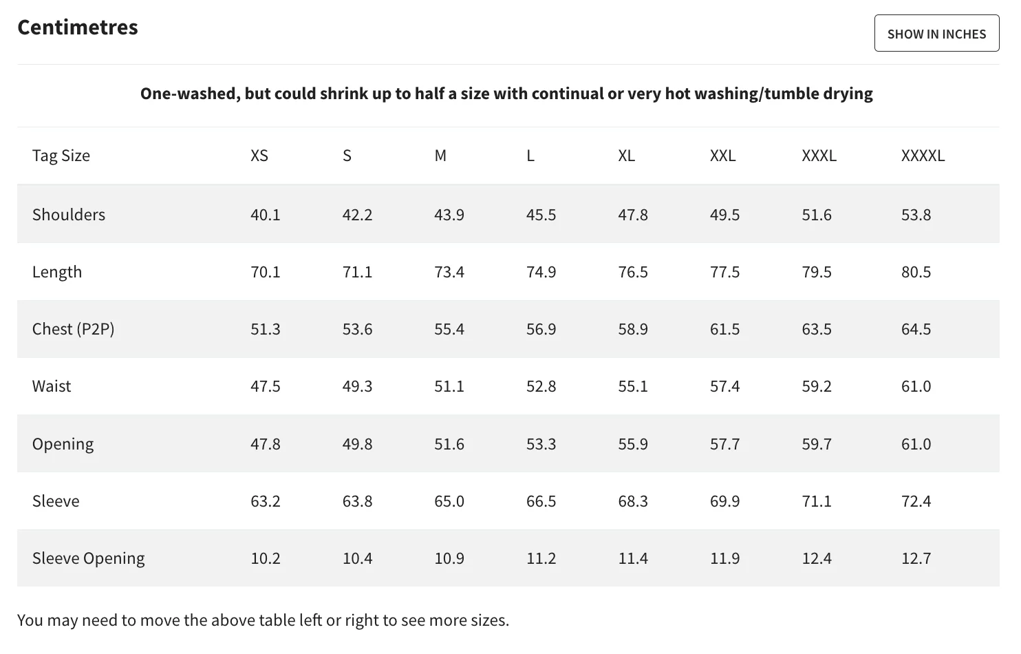 - One-washed, but could shrink up to half a size with continual or very hot washing/tumble drying